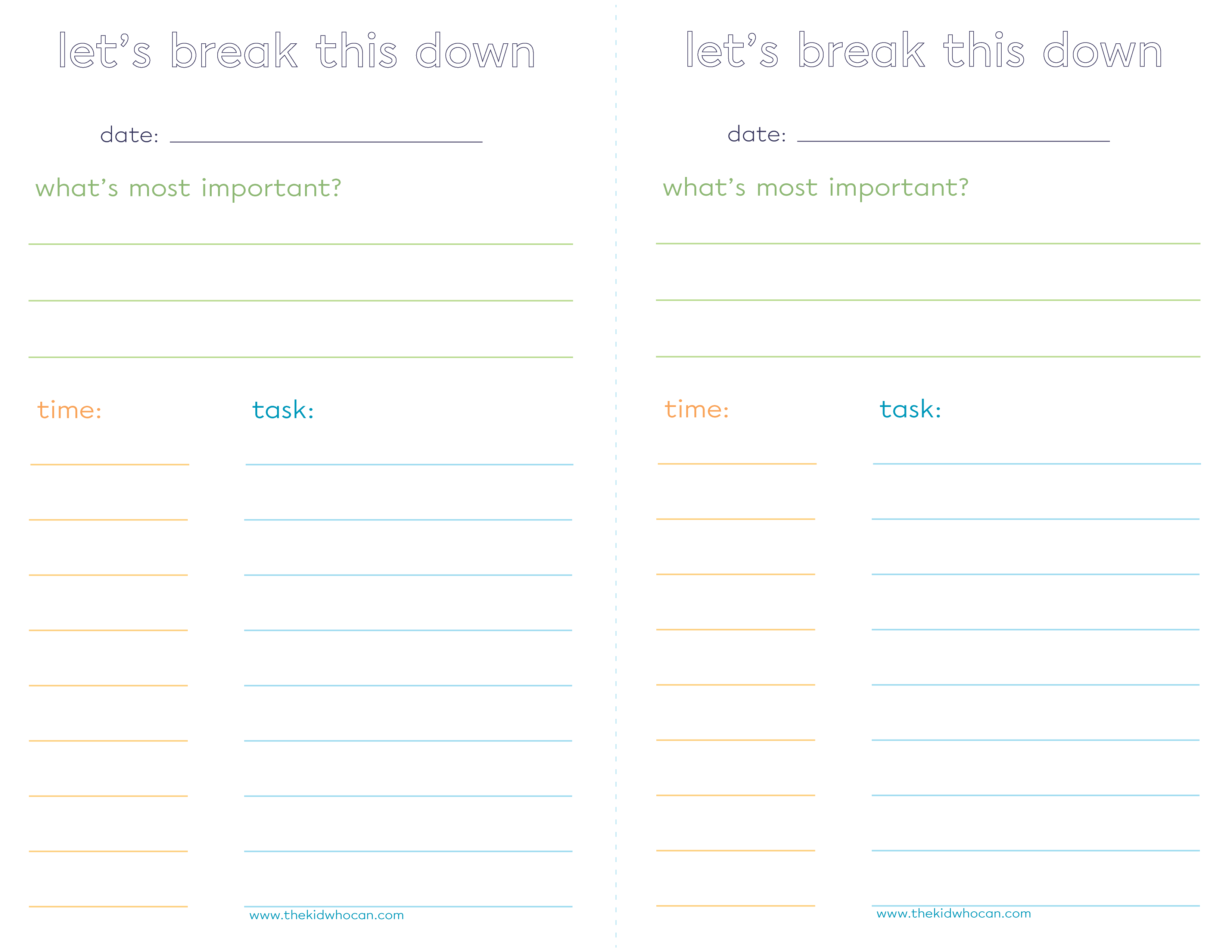 This planner sheet has many different uses, but originally it was created to help kids organize their time once they get home from school.  This notepad can help kids think about what subject/activity to prioritize and create a plan to get the tasks accomplished.  This can often take the stress and pressure off the homework load as they create a clear plan for themselves.   Developing smart time management skills will pay off for years to come.